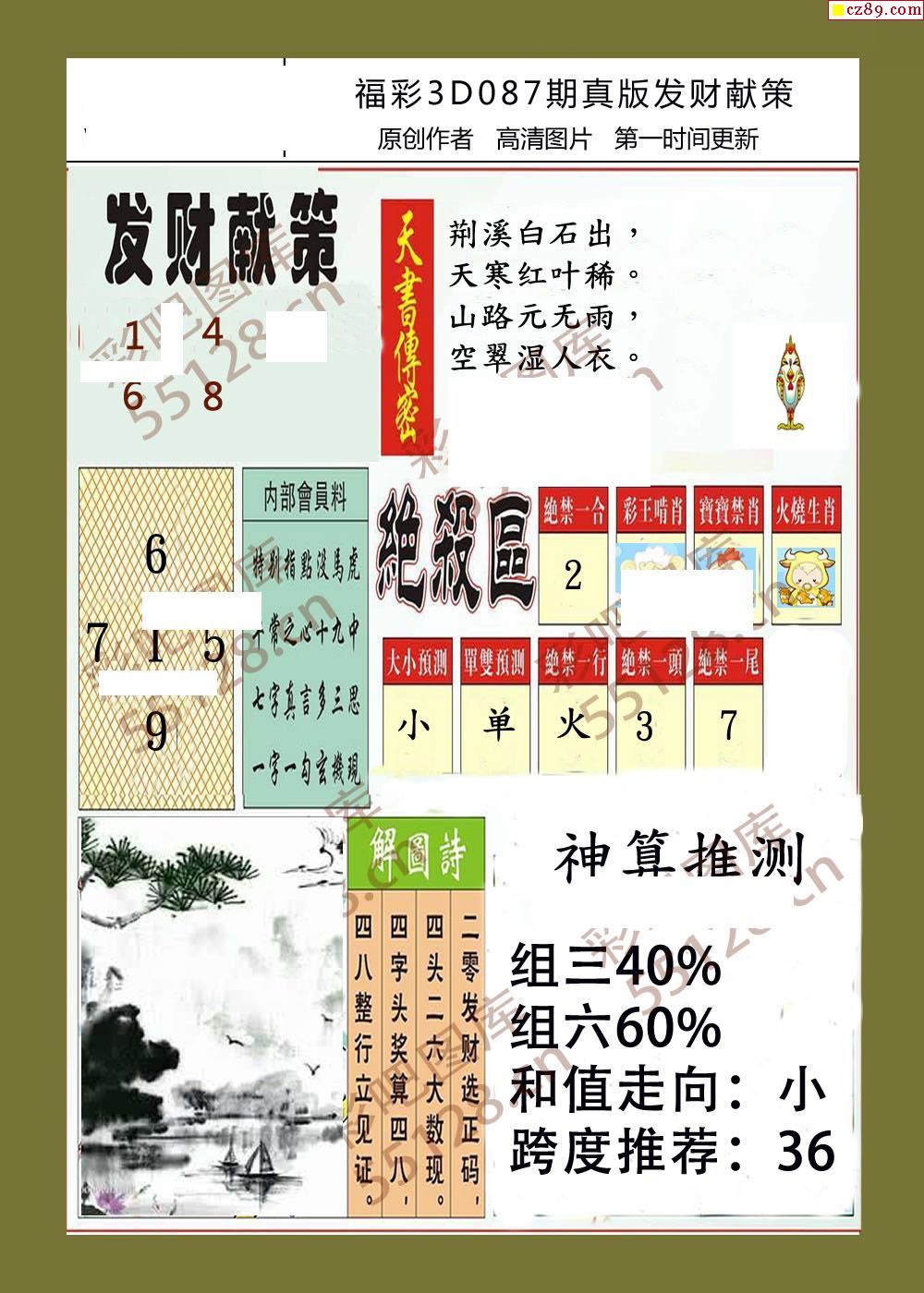 首页 > 福彩3D图谜 > 发财献策26年087期福彩3d字画报