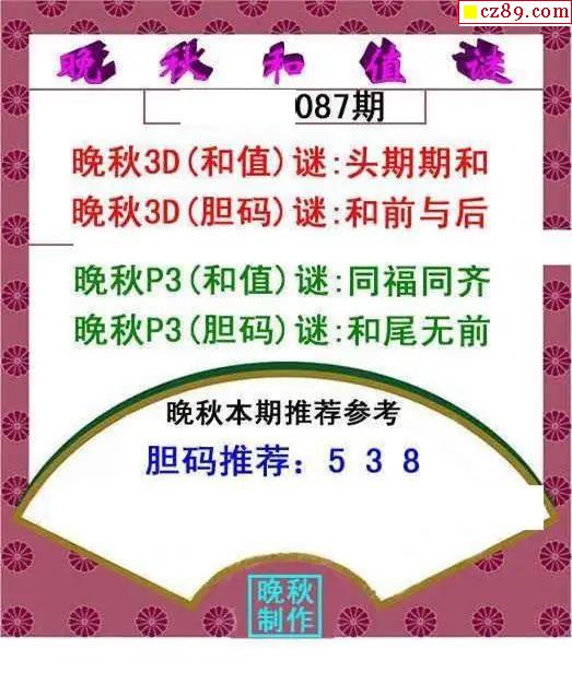 首页 > 福彩3D图谜 > 晚秋和值谜2026087期3d图谜