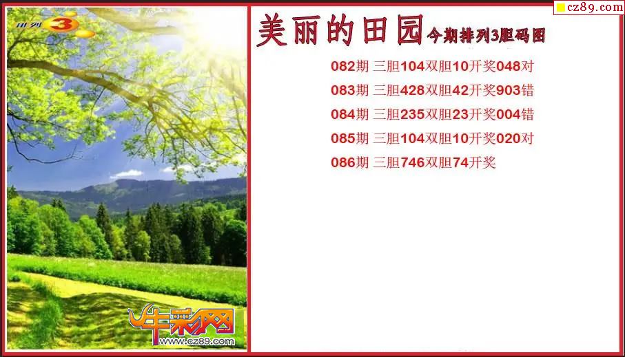 首页 > 排列3图谜 > 2026086期P3美丽的田园胆码图