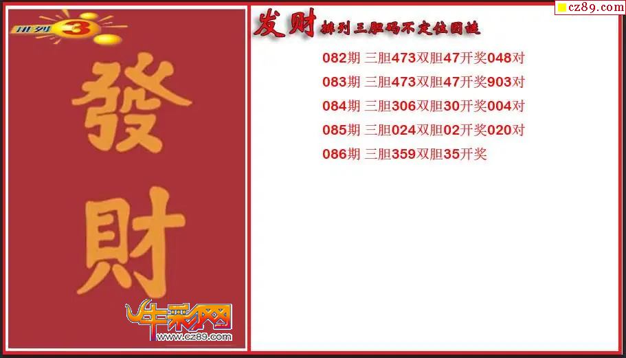 2026086期P3发财胆码不定位图谜
