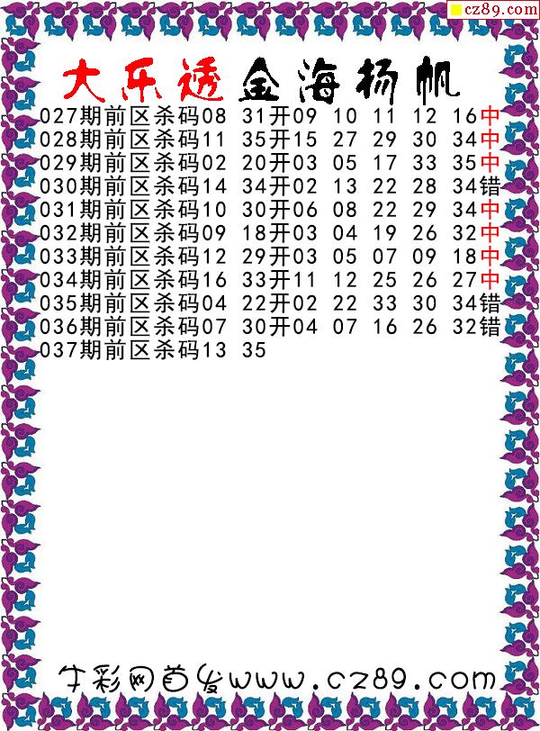大乐透2026037期金海扬帆前区杀号图谜 10中7-「3d试机号」今天_金码查询-福彩3d试机号近10期