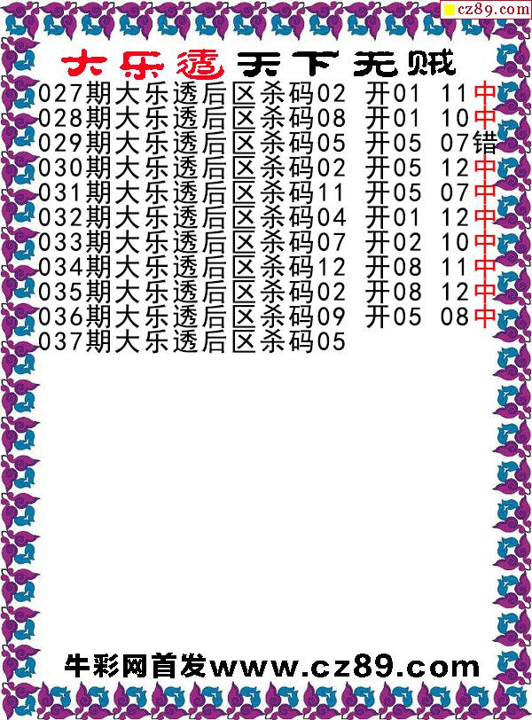 大乐透2026037期天下无贼后区杀号图谜 10中9-「3d试机号」今天_金码查询-福彩3d试机号近10期