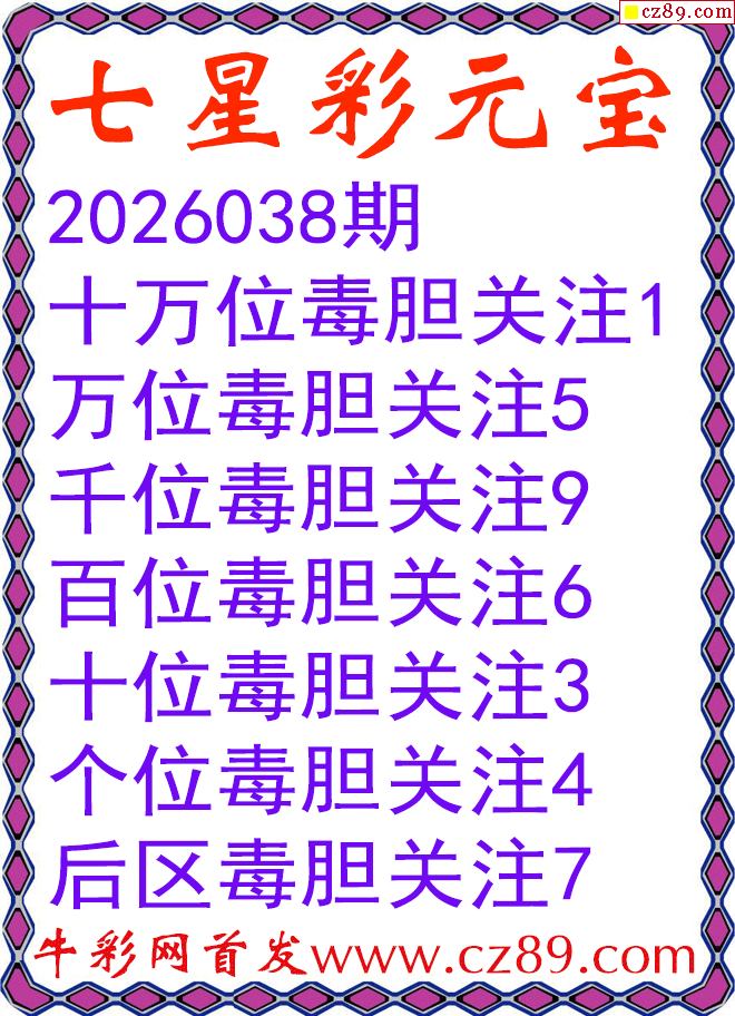 七星彩2026038期元宝独胆图谜